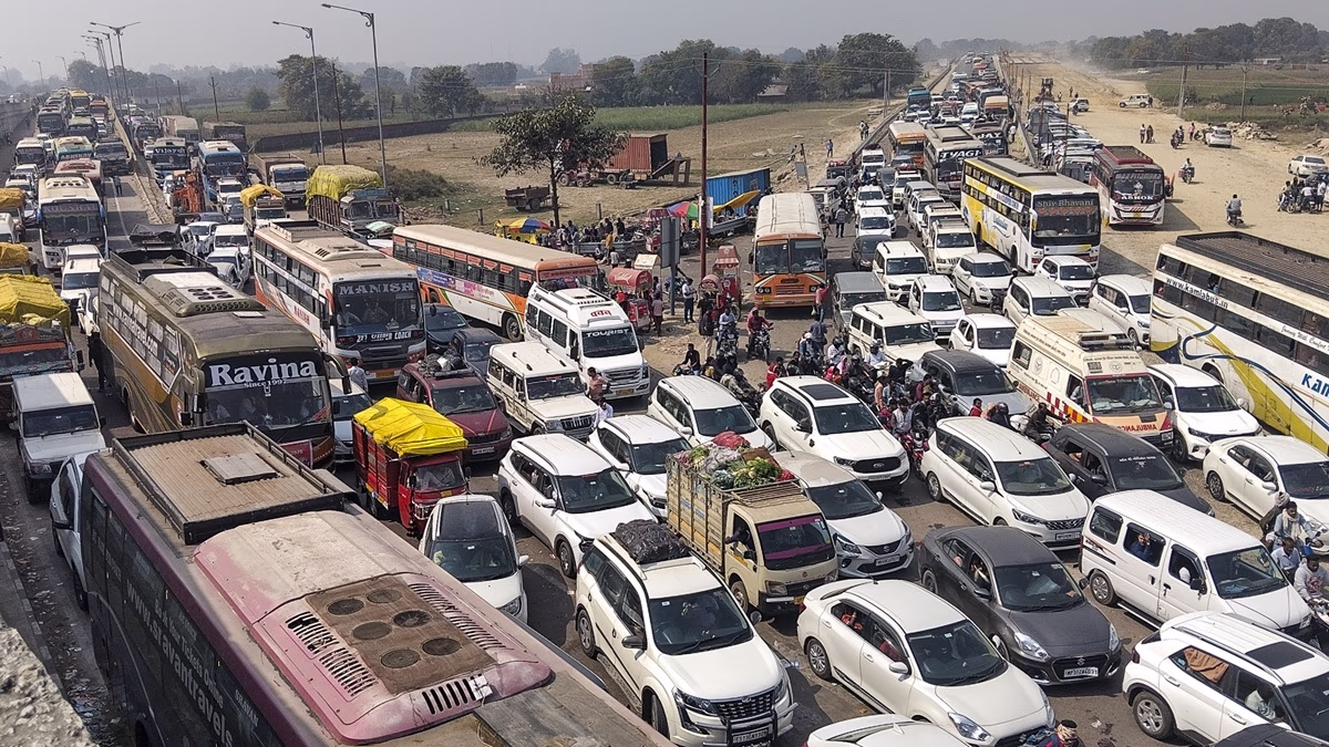 Pilgrims have arrived at the Prayagraj Mahakumbh in their personal vehicles, leading to a 25-kilometer traffic jam where vehicles crawl at a snail's pace. This has caused significant inconvenience, especially for the elderly, children, and women.