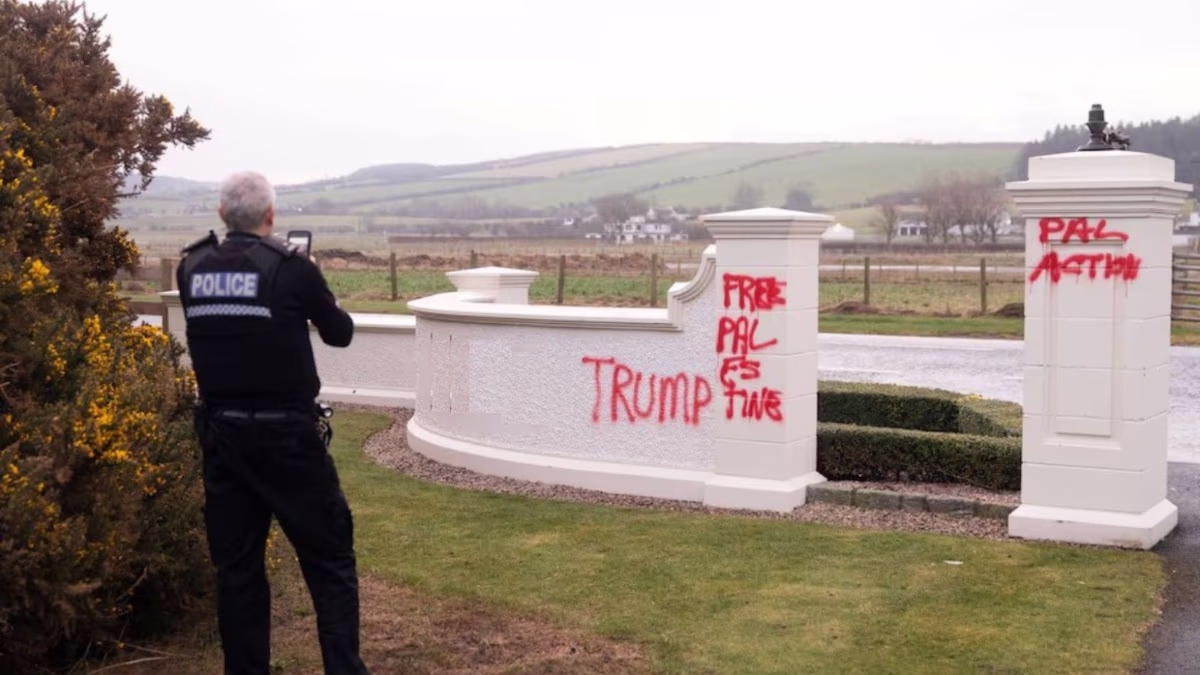 The Turnberry Golf Resort, owned by U.S. President Donald Trump in Scotland, became the center of a pro-Palestinian protest. Demonstrators vandalized the site with graffiti reading 'Free Gaza' and 'Gaza is not for Sale.' Saturday's incident expressed anger over Trump's recent statements regarding Gaza. A group has taken responsibility for the actions, while Scottish police investigate.