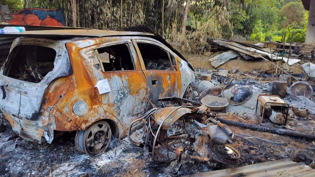 Our team reached a village 30 kilometers from Imphal, where this aggressive wave of violence began on September 1. In the village of Kotruk, Imphal West district, drone bombings started around 2 PM, causing fires that destroyed homes and vehicles.