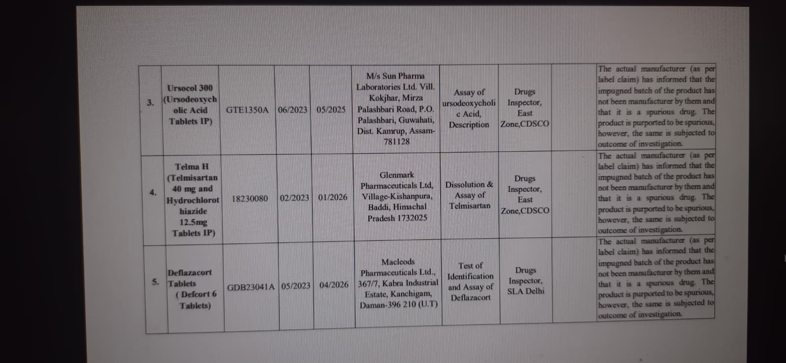 This Glenmark medication for high blood pressure also failed to meet standards.
