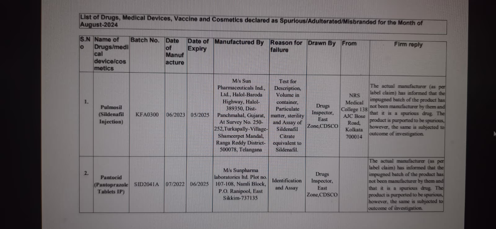 Manufactured by Sun Pharma, this drug used to treat erectile dysfunction also failed to meet quality standards.