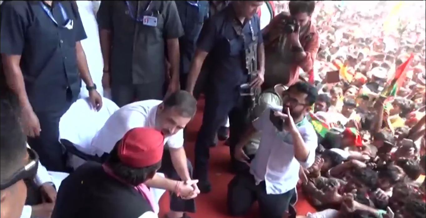 The combined rally of Akhilesh Yadav and Rahul Gandhi in Phulpur and Prayagraj, Uttar Pradesh, turned chaotic as activists overcame barriers to get closer to the stage. After the commotion, both Rahul Gandhi and Akhilesh acknowledged the gathered leaders and departed without addressing the crowd.