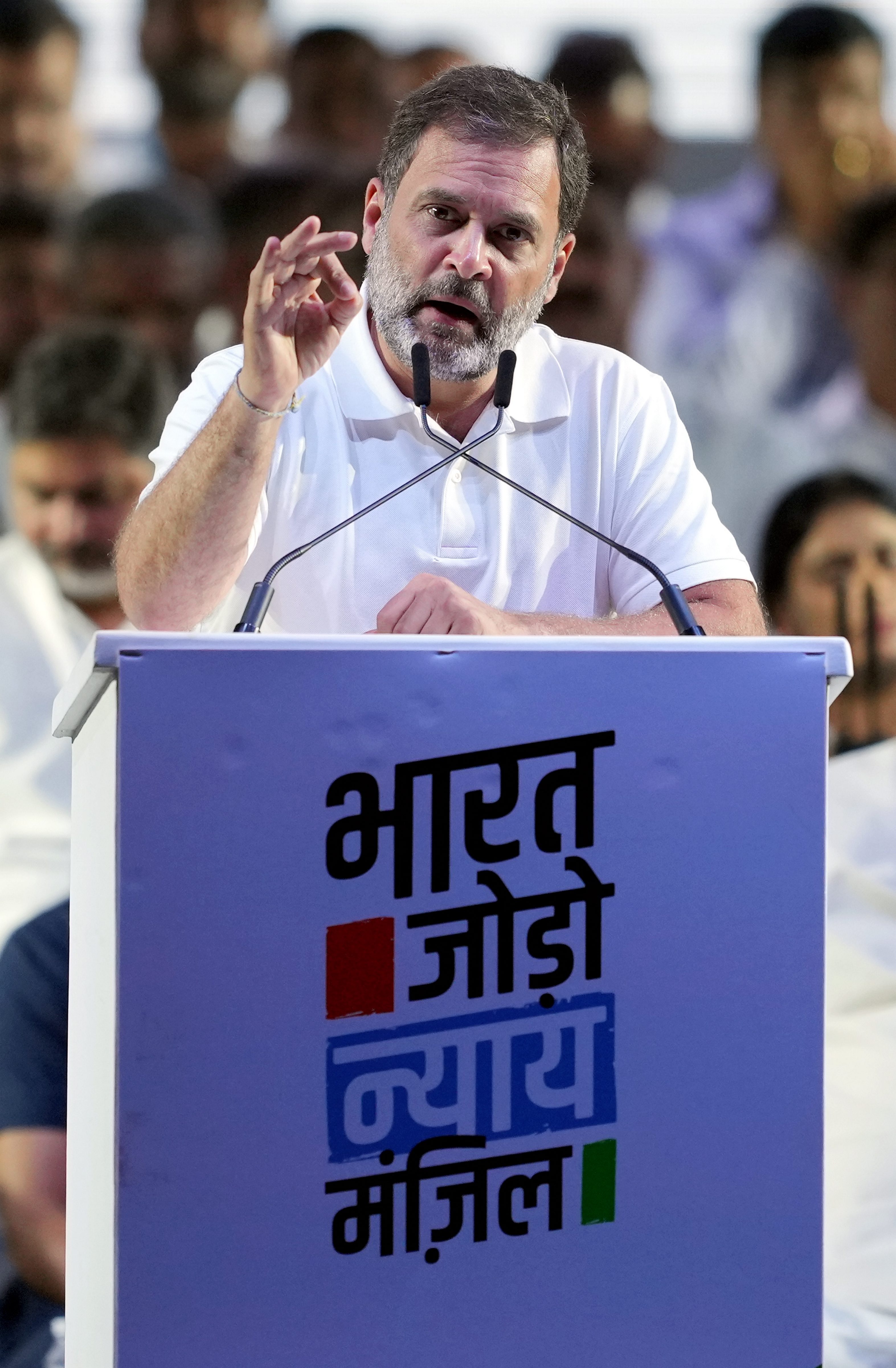 Starting his address, Rahul Gandhi shed light on the need for the Nyay Yatra. He questioned, 'Why did we have to embark on this journey from Kanyakumari to Kashmir last year? Had anyone told me in 2010 or 2014 that I would have to traverse 4000 km, I couldn't have even imagined it. This journey was a necessity because the communication system of our country is not in the hands of its people. The real issues – unemployment, violence, hatred, the problems of farmers and soldiers, the Agniveer issue – you won't see these reflected in the media. Hence, we had to walk because we had no other choice. It was necessary to capture the country's attention; therefore, the entire opposition and the entirety of India's opposition joined in. Don't labor under the misapprehension that I walked alone. I want you to know that even social media is under control today.