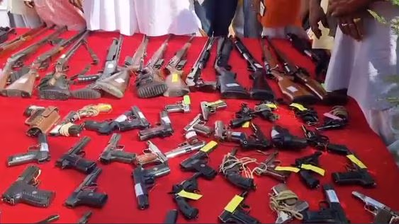 A viral video is making waves on social media, showing Raja Bhaiya performing rituals over these arms on Vijayadashami. The collection includes pistols, 12-gauge shotguns, revolvers, rifles, and thirty carbines. During the ceremony held at Benti Palace, Raja Bhaiya stated, "All these weapons are ours, and what belongs to our supporters is ours as well, and vice versa."