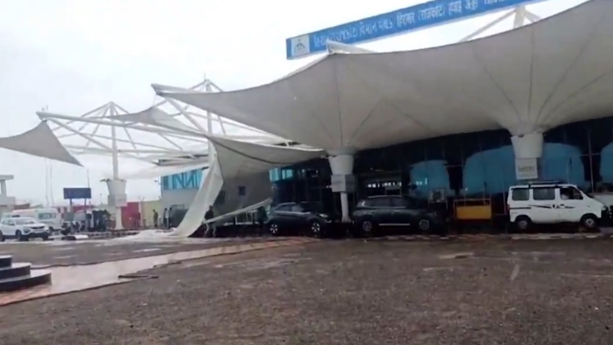 A significant mishap was narrowly averted on Saturday at the Rajkot International Airport, mirroring a similar recent event at Delhi Airport's Terminal 1. At Rajkot's Hirasar International Airport, the passenger pick-up and drop-off area canopy outside the terminal collapsed due to torrential rains. The silver lining here is that no injuries were reported from this event. PM Modi had previously inaugurated the new airport terminal in July 2023, following an expansion exceeding the cost of 1400 crores.