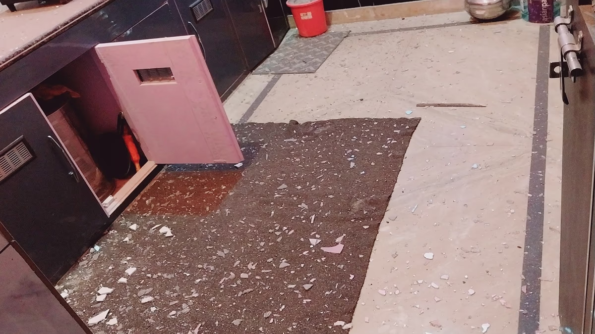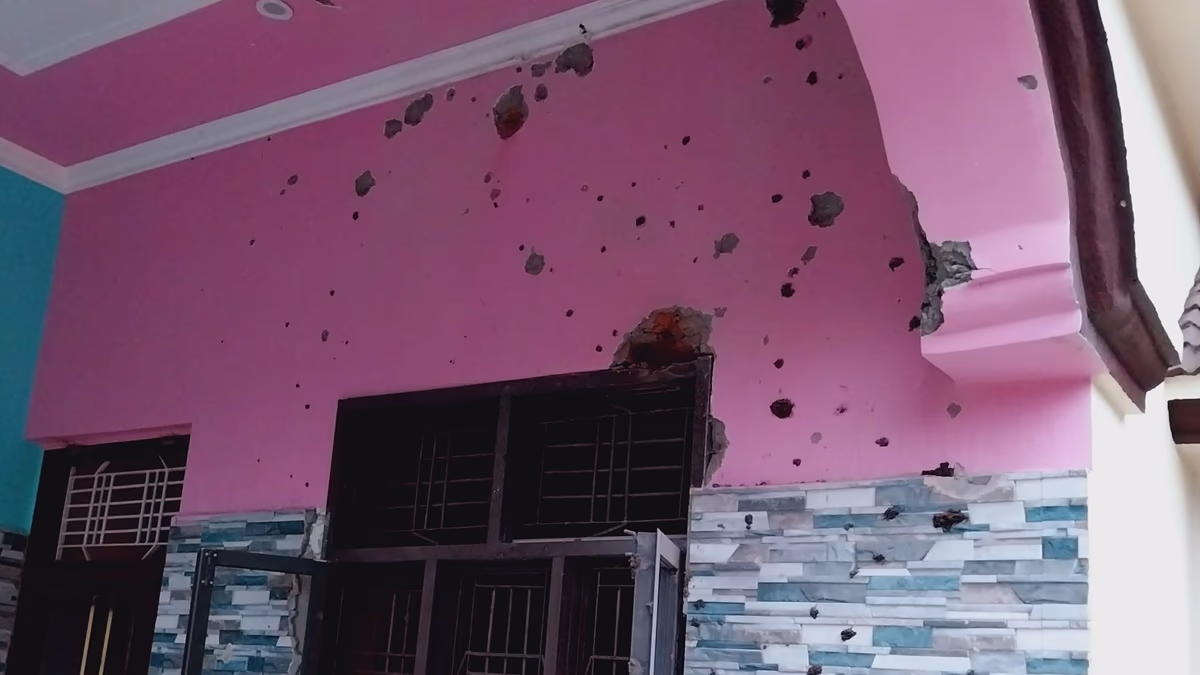 In Rajouri, a missile landed near the home of a newlywed couple, causing severe damage. Videos show the shattered glass strewn across the entire veranda of Rishi and Shruti’s home. The walls are stripped of cement, leaving the large house appearing as if it had undergone a construction ordeal.