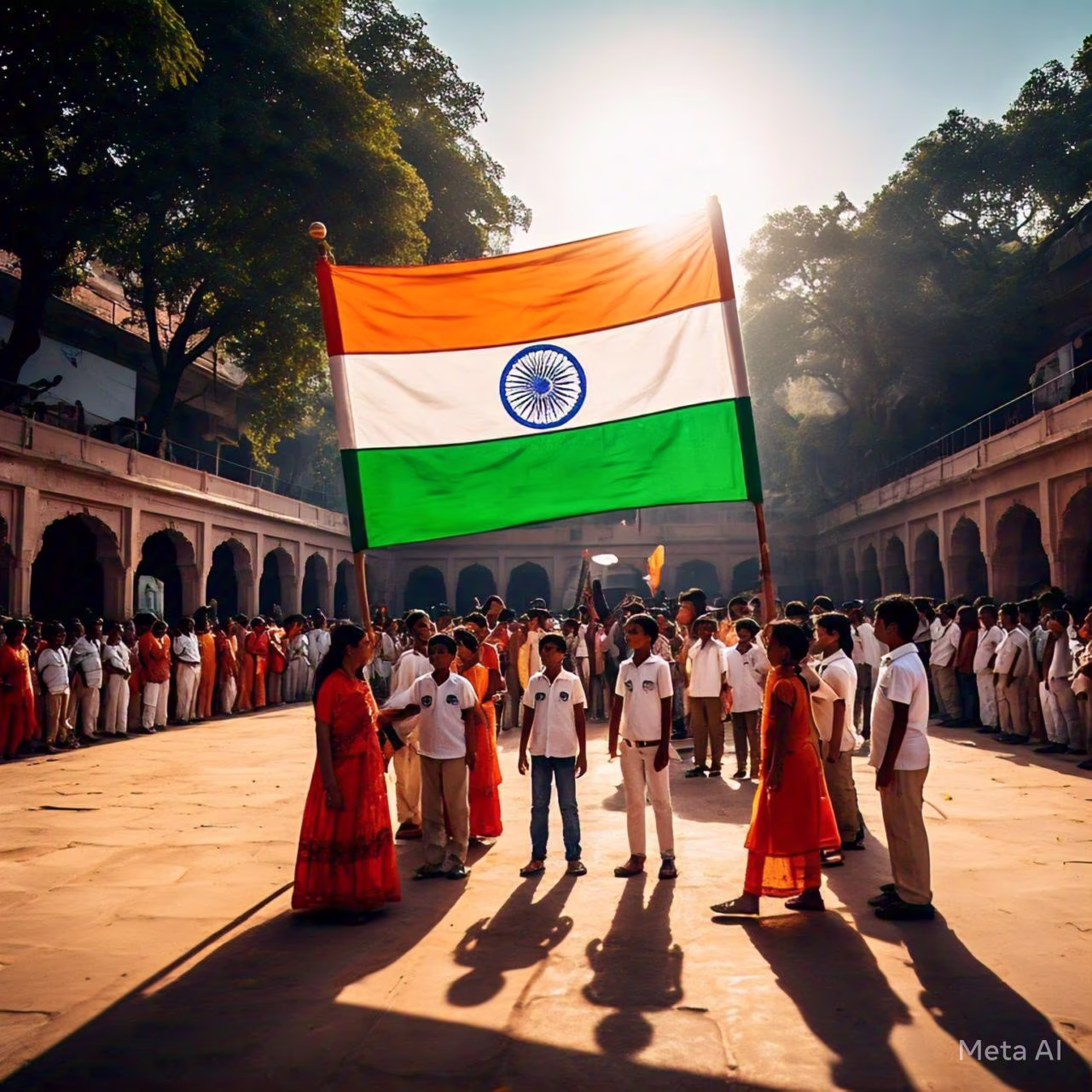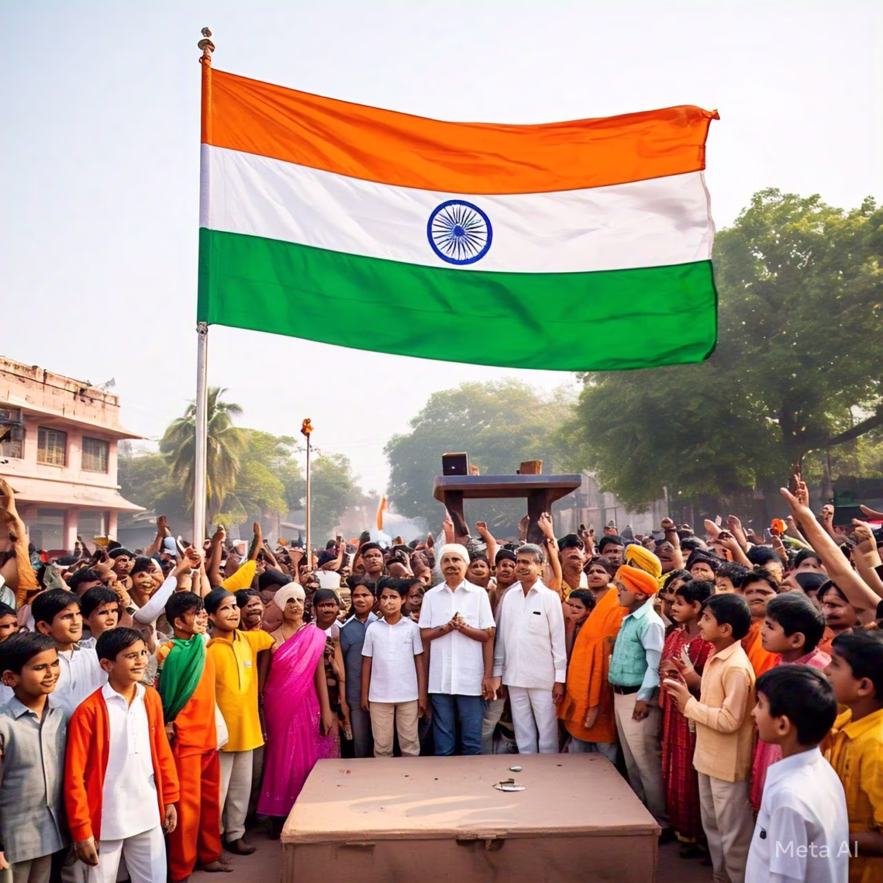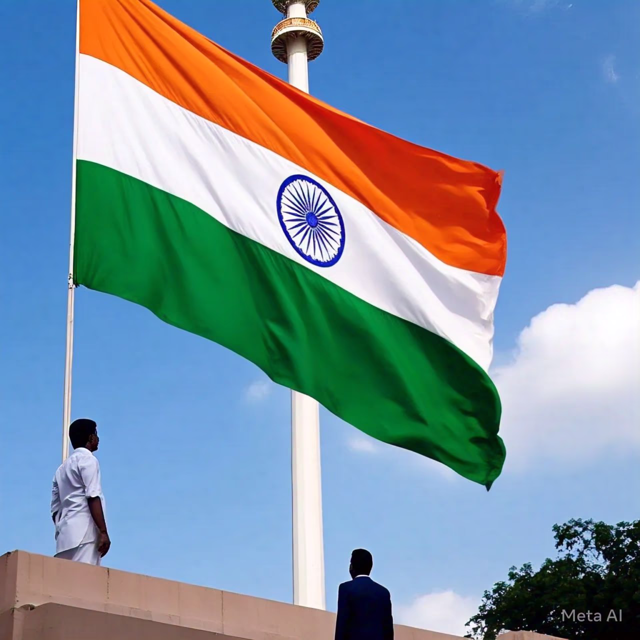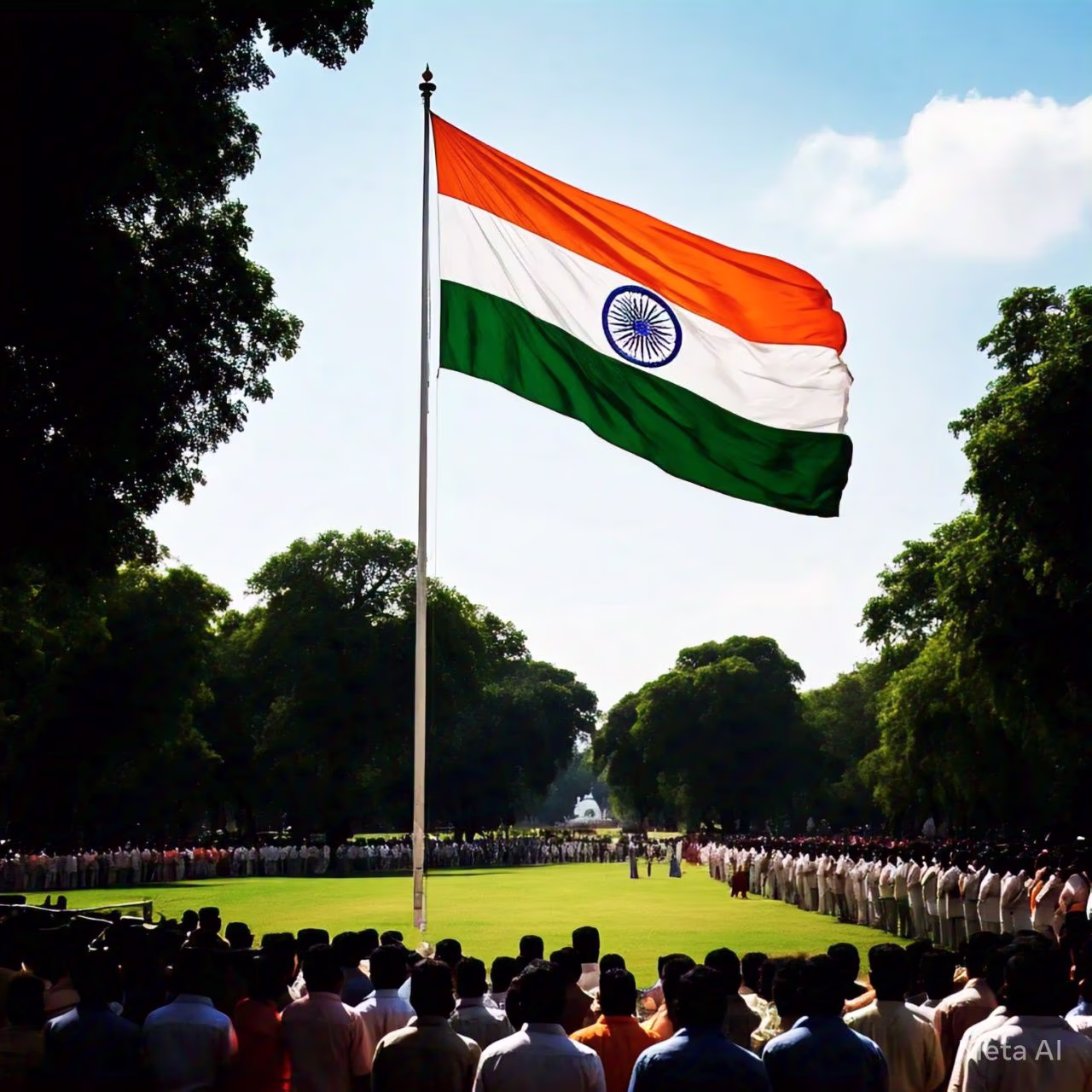 On this day, India's President ceremoniously unfurls the national flag. This act involves securing the flag at the top before pulling the rope to display it proudly.