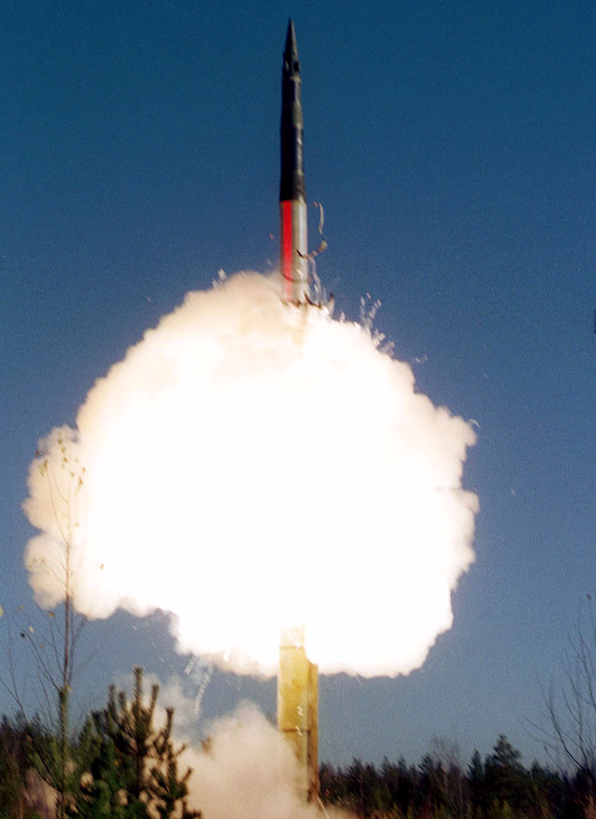 Deployable from a road-mobile launcher or silo, each missile can carry three warheads, enabling simultaneous strikes at three locations. It generates a yield of 200 kilotons. Russia has 772 such warheads for this missile, with 63 mobile and 10 fixed launching stations. Its range is 12,000 km, and it can evade any air defense systems.