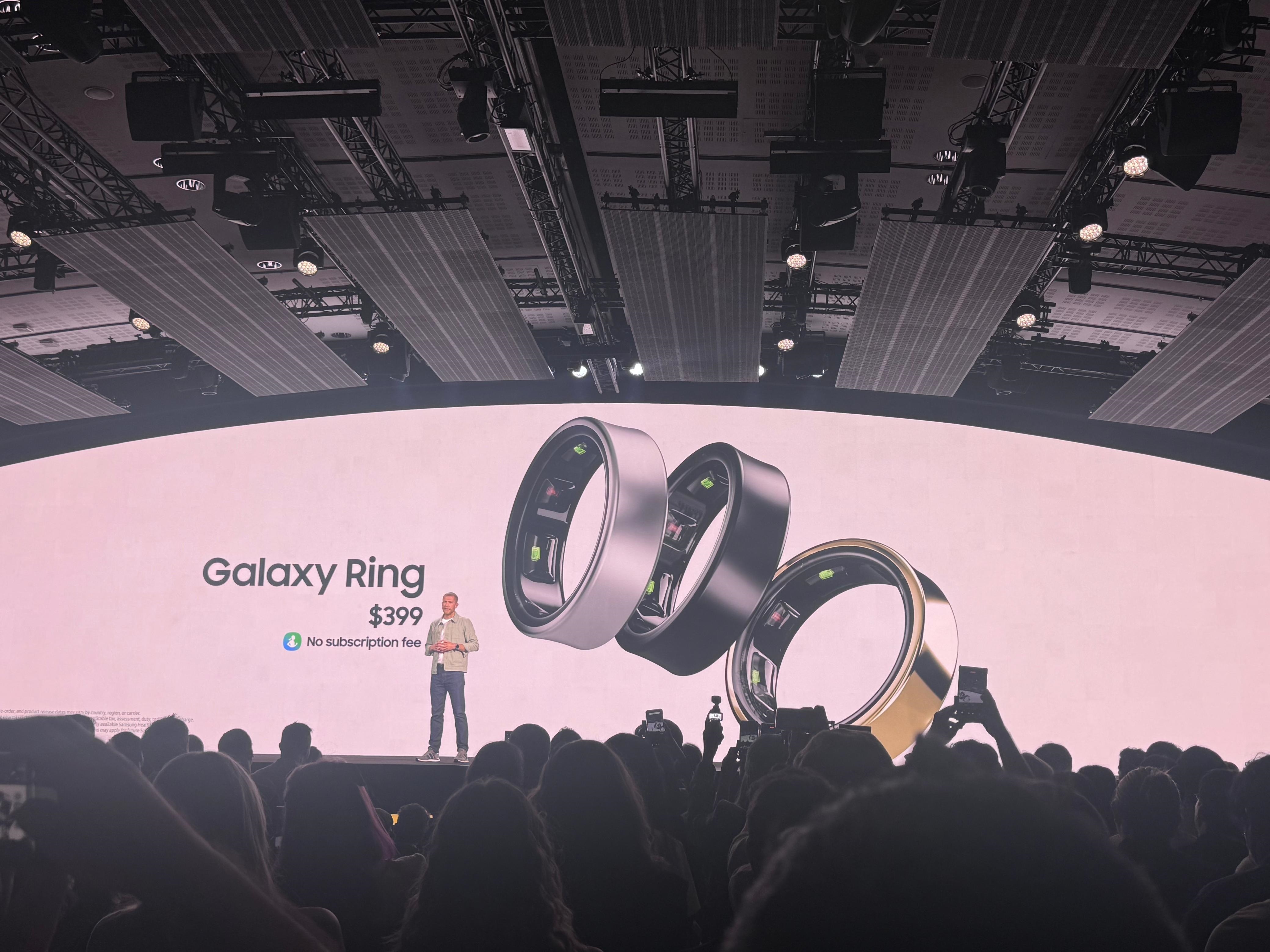The Samsung Galaxy Ring is tagged at $399. It's offered in three color variants: Titanium Black, Titanium Silver, and Titanium Gold. A sizing kit accompanies it, ensuring a perfect fit for any finger size.