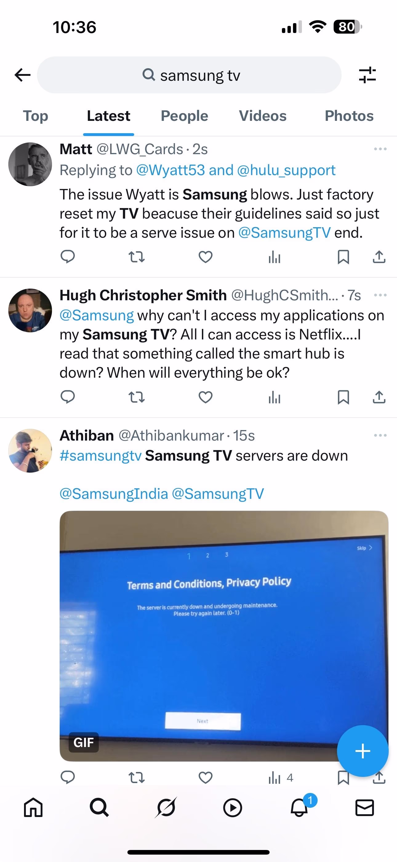 One user posted on social media, 'Can’t even watch TV tonight as Samsung's server is down.' Another added, 'Five-year-old TV replaced with a new Samsung—just to experience a server failure.'