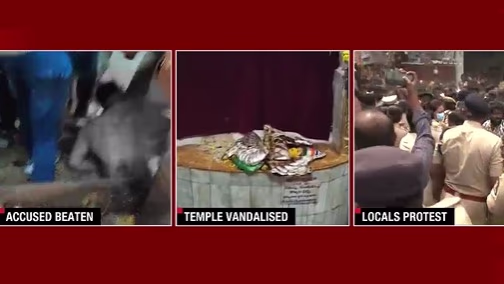 It has been reported that along with the acts of vandalism, the idol within the Muthyalamma Temple was desecrated, escalating the anger and indignation among the locals. A significant number of people rallied at the temple to voice their fury. During this volatile period, the apprehended individual faced assault. To maintain order, the police have deployed additional forces.