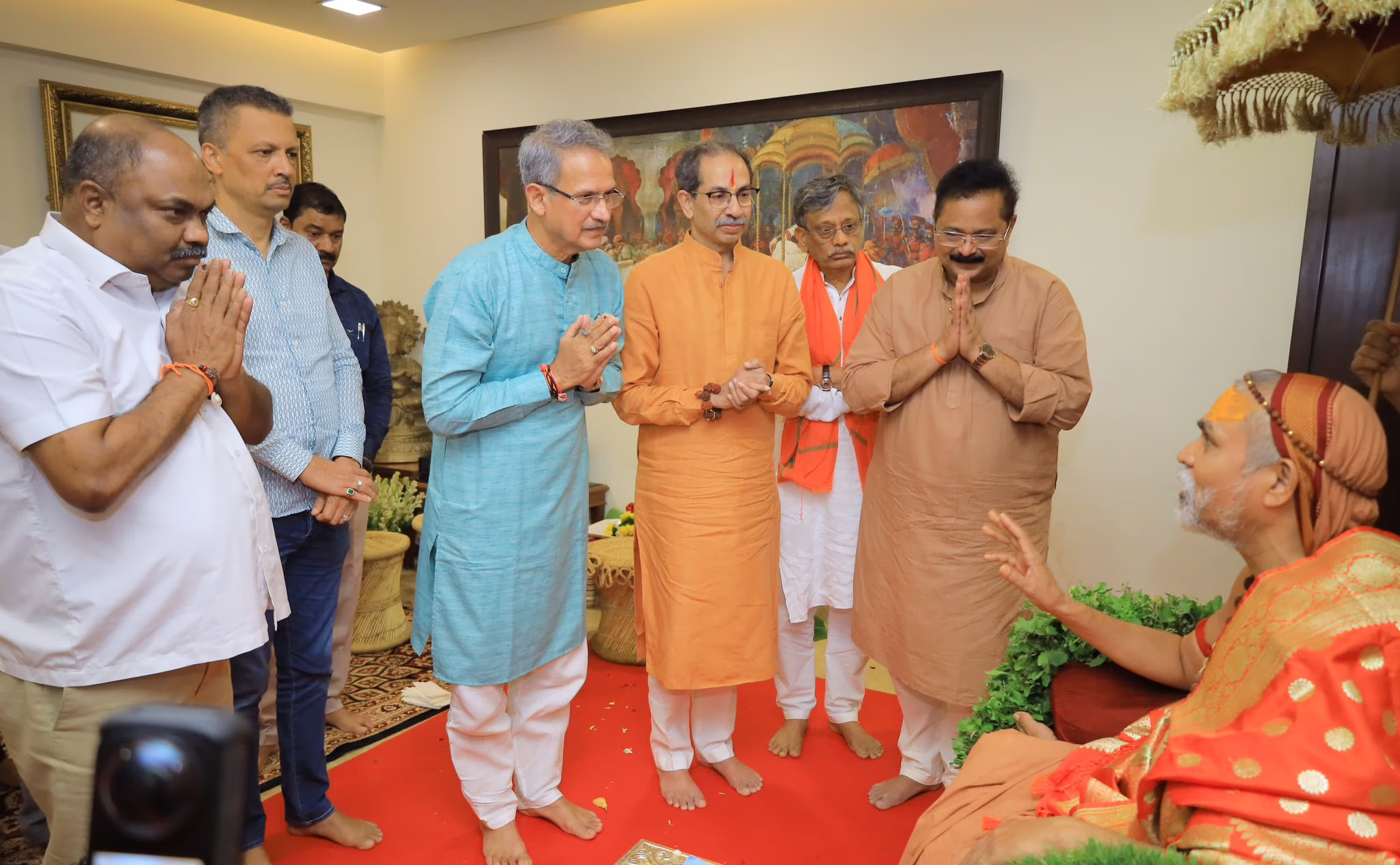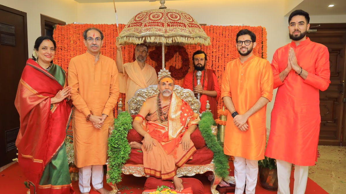 Shankaracharya Avimukteshwaranand, from Joshimath of Uttarakhand, met with Uddhav Thackeray at the latter's residence. The visit included a religious ceremony where the Thackeray family sought blessings and performed the worship of the sandals. The entire family was present during the auspicious event.