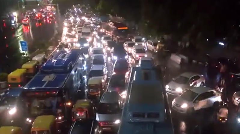 While roads were waterlogged, another issue of traffic jams emerged. A video from Jhandewalan shows water flowing on the road, causing a traffic jam. Long lines of vehicles were seen with a cacophony of horns and drivers eager to move forward. Post-rain peak hour saw people struggling to reach home. This video perfectly illustrates the 'admiration-worthy' arrangements in your city.