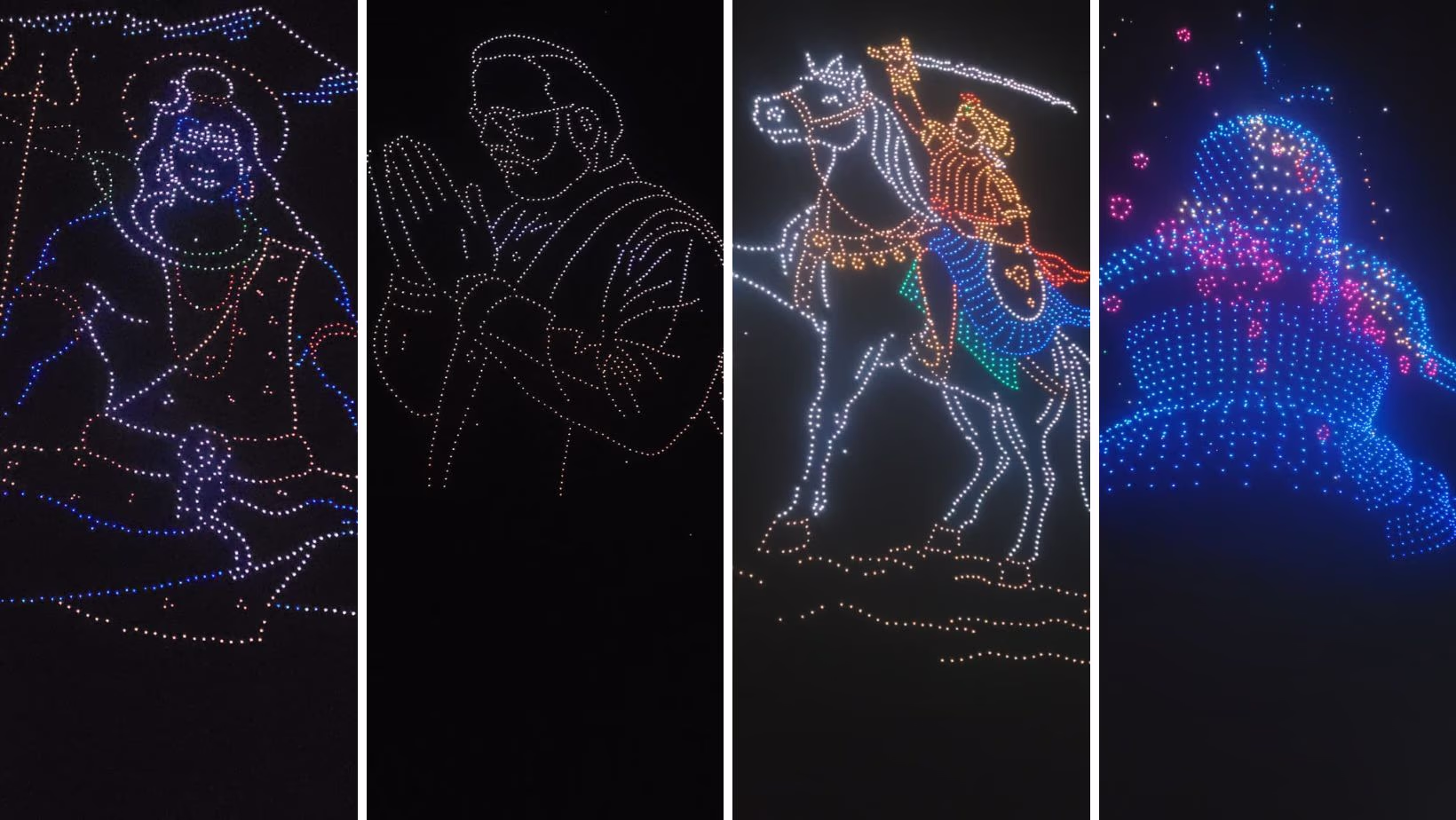 As part of the Somnath Pride Festival, a spectacular drone show unfolded along the Arabian Sea's shores near Somnath Temple. The show featured amazing formations with about 3,000 drones, captivating the audience. The aerial display depicted symbols such as the trident, Om, Shiva's dance, brave Hamirji, Ahilyabai Holkar, scenes from the raid on Somnath Temple, Sardar Patel, and the image of PM Modi.