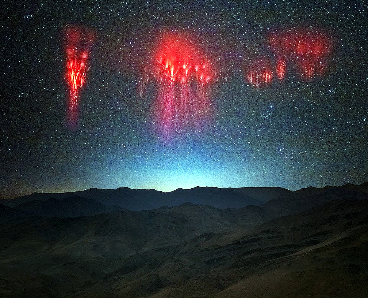 It's not just our atmosphere that can produce lightning-like Sprites. These bursts of energy are likely to happen around any planet or star with an atmosphere. In fact, Sprites were initially photographed by NASA's Voyager-1 spacecraft in Jupiter's atmosphere in 1979, identified as Blue Jets.