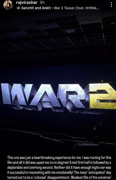 Many have expressed disappointment with the film, and now Rajveer Asher, a former Assistant Director for the Spy Universe film 'Pathaan', has publicly declared his views. Through a candid Instagram post, he labeled 'War 2' as a colossal disappointment and regarded it as one of the weakest entries in the Spy Universe. Rajveer shared, 'It's absolutely heartbreaking. I held such high hopes for this film, but it has left me utterly disheartened.'