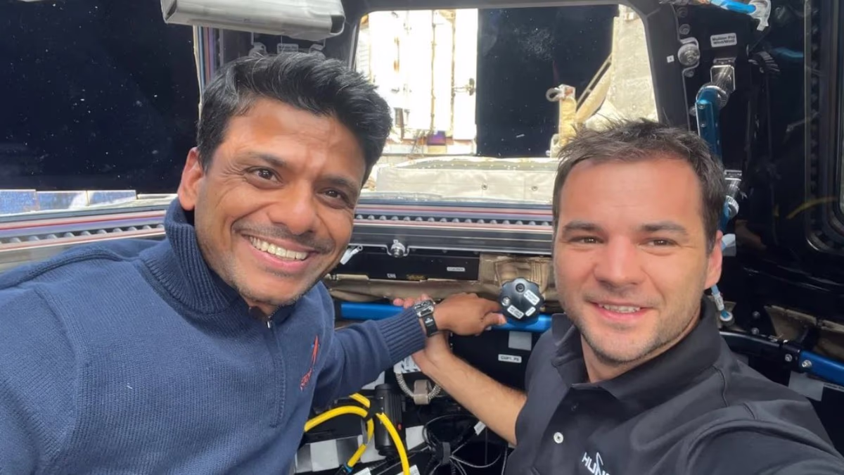 A striking new image has emerged of Group Captain Subhashu Shukla of the Indian Air Force, beaming from space. Captured from the space station, this selfie shows Subhashu alongside fellow astronaut and mission specialist Tibor Kapu within the confines of the ISS’s Copula module. It's day three for Subhashu’s space mission as part of the four-member Axiom-4 (Ax-4) team, who are spending 14 days aboard the International Space Station.