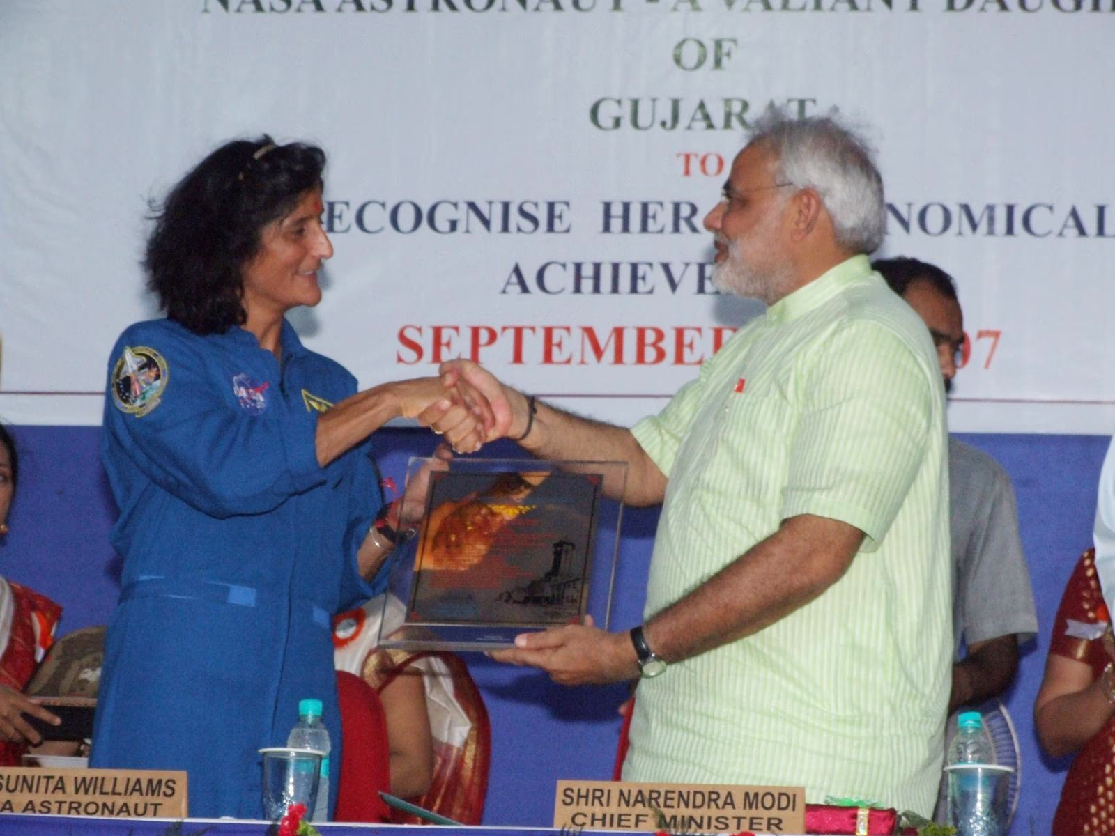 During 2007, after her second mission (Expedition 14/15 - December 9, 2006 to June 22, 2007), Sunita Williams, an astronaut of Indian origin, received a grand welcome in India. Her visit was a moment of celebration and pride.