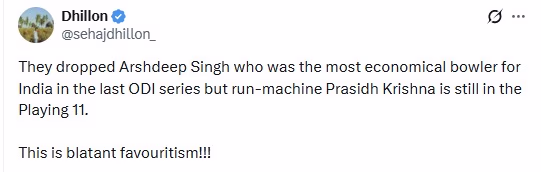 The main reason behind the backlash is Arshdeep's recent performances. He played in all three ODIs against South Africa before the New Zealand series and proved to be India’s most economical and reliable pacer, taking five wickets with an economy of 5.50. In contrast, Harshit Rana took four wickets with an economy of 6.39, and Prasidh Krishna took seven with a more expensive 7.80 economy rate.