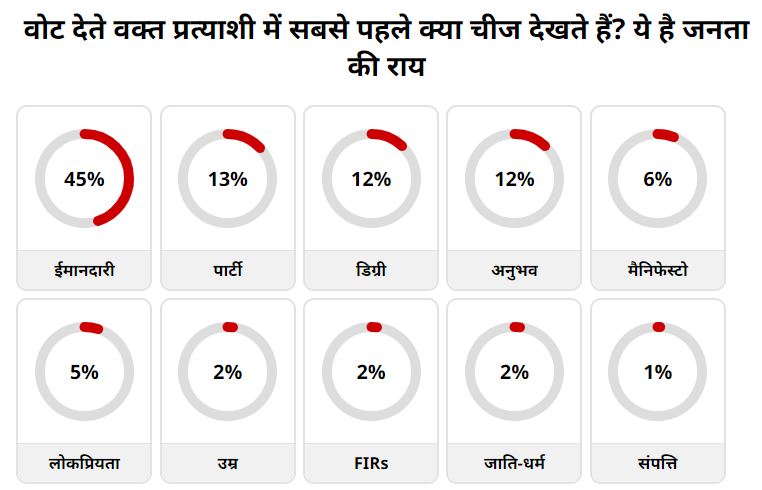 The survey indicates that 45% of respondents place honesty as their top criteria for leaders. They demand transparent, honest candidates to ensure swift and efficient local development. Meanwhile, 13% focus on the political parties themselves, considering the party symbol of paramount importance before casting their vote.