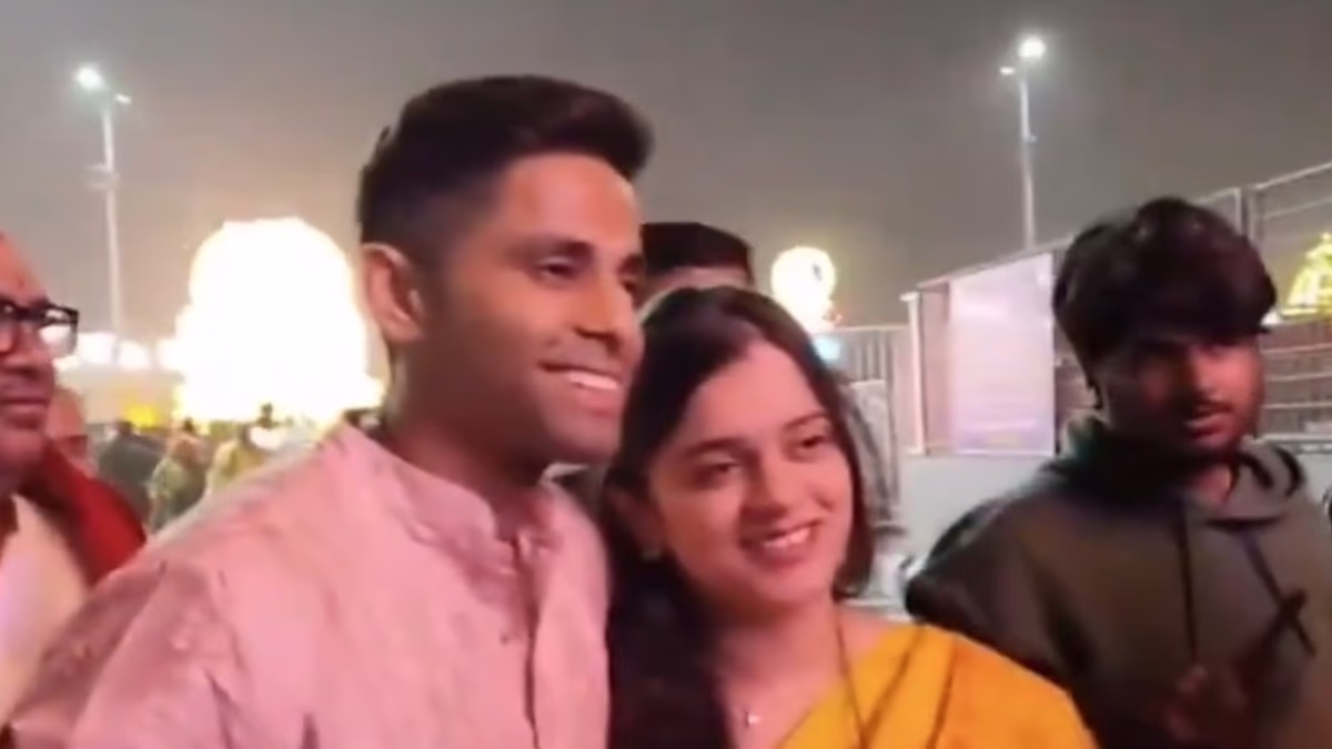 Upon entering the temple premises, Suryakumar Yadav was seen briefly interacting with the media. Donning a vibrant pink sherwani while Devisha wore a traditional silk saree, Suryakumar didn't shy away from obliging a few fans with selfies. This temple visit forms part of the 35-year-old batsman's much-needed family break after a hectic international schedule.