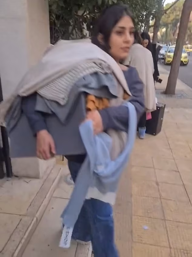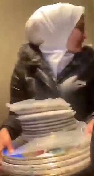 One image captures a woman exiting the palace adorned in designer clothes, rejoicing as she carries a load on her shoulders.