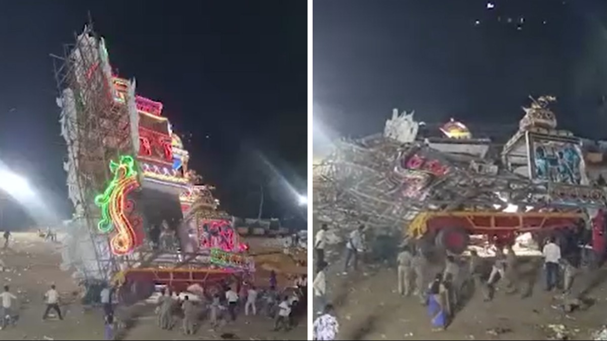 Spectators say that as devotees attempted to rotate the chariot, it suddenly lost stability, resulting in its upper part coming crashing down. The incident saw Vimalraj Venmani, aged 30, getting pinned under the wreckage.