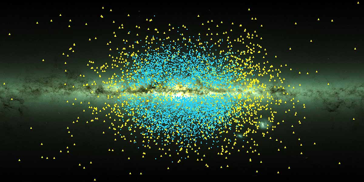 The blue dots represent Shiva, the yellow dots Shakti. Together, these particles form the tapestry that is our Milky Way. Remarkably, these dots are ancient stellar waves that came together post-Big Bang, about 12 billion years ago.