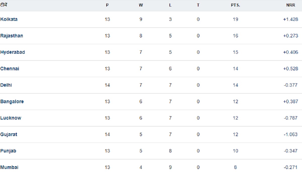 This rainout has triggered a fierce battle for the second spot in the playoffs. Kolkata Knight Riders (KKR) has sealed the top position. Now, the rest of the teams are vying for second place. Finishing in the top-2 confers the advantage of two opportunities in the playoffs.