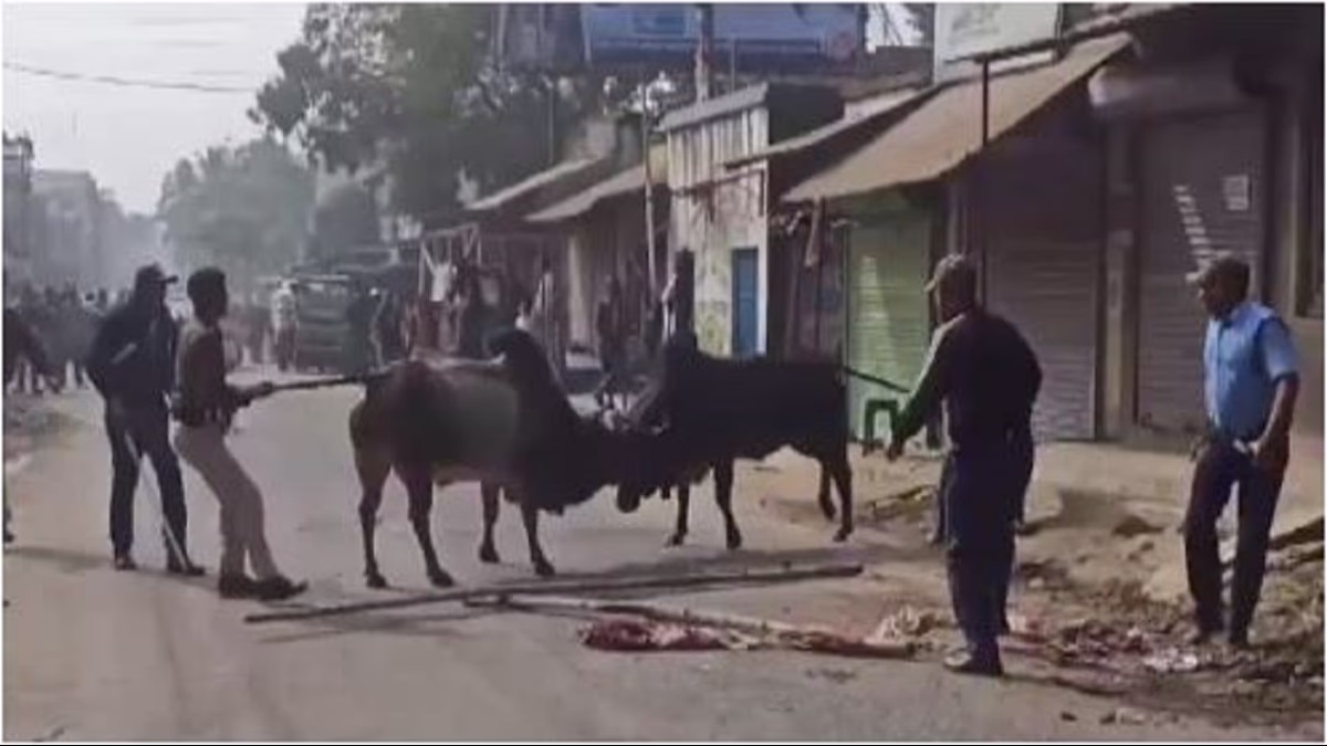 A most peculiar sight unfolded on the highways of Malda, West Bengal, where two stray bulls locked horns in such a fierce battle that despite numerous attempts, they could not be separated. Eventually, the police were called to calm the chaos.