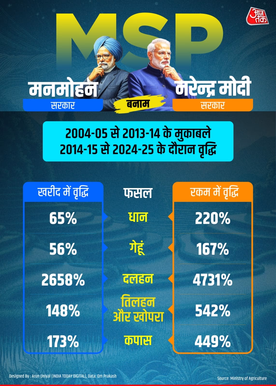 For years, the Minimum Support Price (MSP) of crops has been a pivotal issue for farmers, now becoming a significant political tool. A majority of protesting farmer organizations claim that the Modi government is intent on abolishing the MSP, while the main opposition party, Congress, leaves no stone unturned in challenging the ruling coalition on this in Parliament. But has any farmer organization or party genuinely attempted to examine how much the Manmohan Singh government vs. the Modi administration has provided to farmers? Examining these figures clearly shows which administration fortified farmers economically.