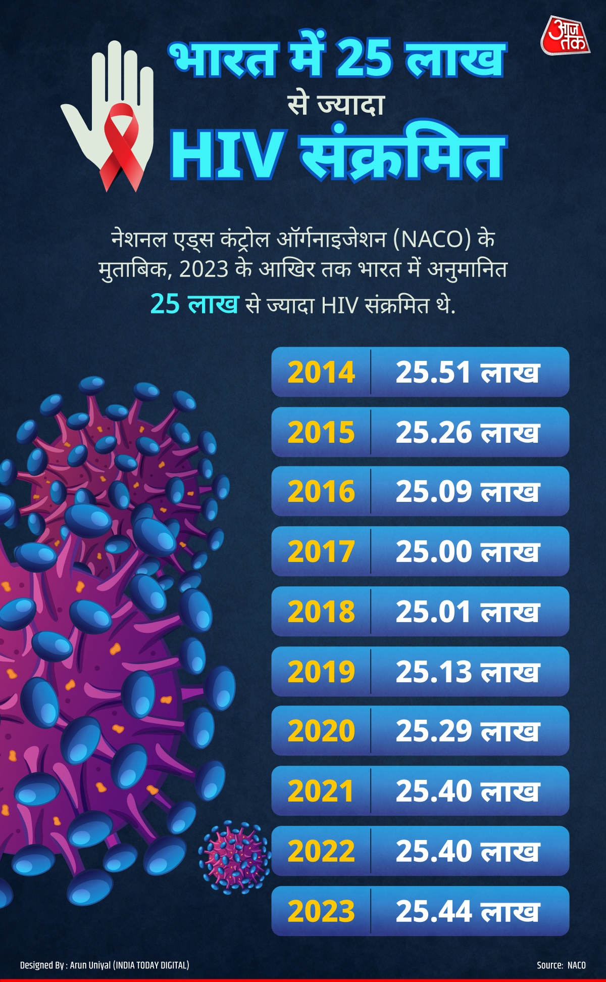 By 2023 in India, NACO indicated over 2.5 million people were living with HIV, with 68,451 new cases and 35,866 deaths reported the previous year.