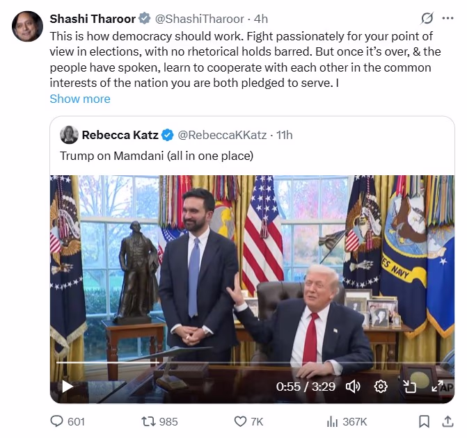 The meeting between U.S. President Donald Trump and New York City's Mayor Zohran Mamdani signals a new chapter in global politics. This pivotal encounter has stirred a debate in India, fueled by a cryptic post from Congress MP Shashi Tharoor. Tharoor extolled the meeting as a true manifestation of democratic spirit, suggesting parallels to ongoing internal disputes within Congress.