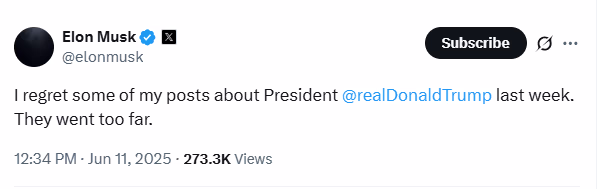 Last week witnessed a verbal skirmish between President Donald Trump and billionaire entrepreneur Elon Musk. In the midst of this, Musk took to X to express regret over his recent posts, feeling that they went too far.