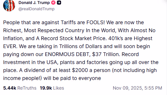 Donald Trump has once again highlighted the benefits of tariffs. In a social media post, he declared that under his leadership, America is progressing rapidly and labeled critics of US tariffs as 'fools.' Additionally, he promised a $2000 dividend to almost every American from tariff revenue.