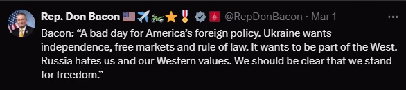 Nebraska Representative Don Bacon declared it a challenging day for US foreign policy.