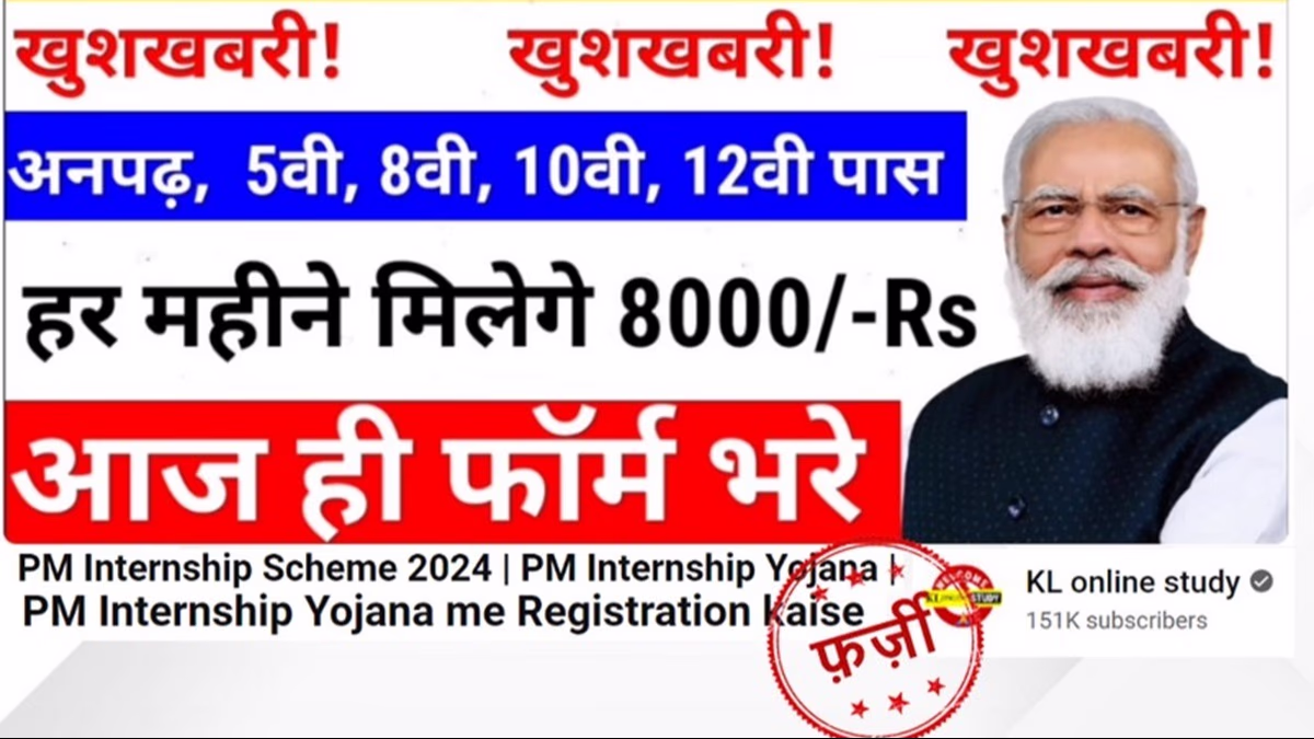 The truth about the central government's internship program news circulating on social media has come to light. A rumor had been spreading for quite some time that the central government would provide eight thousand rupees to illiterate individuals, along with those who passed 5th, 8th, and 10th grades under the 'PM Internship Scheme 2024'.