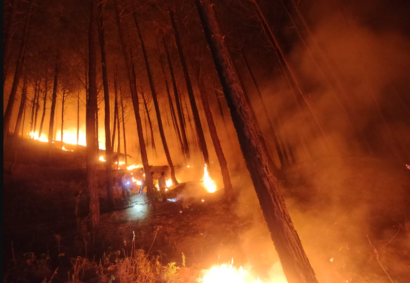 Close to the district headquarters of Uttarkashi, the hillside of Varunawat is witnessing a fast-spreading fire. The Forest, NDRF, and QRT teams are struggling to contain the blaze, but it remains uncontrollable.