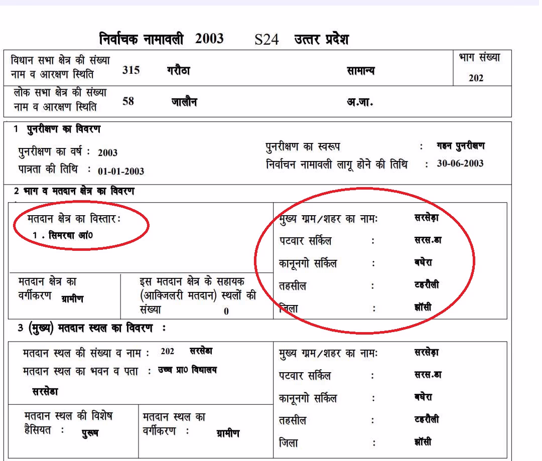 Look at this - the village is Simardha…but you won't find its name in the online voter list. That's because Simardha's list is attached to Sarseda. Despite both villages being 40 km apart, they share the same assembly constituency.