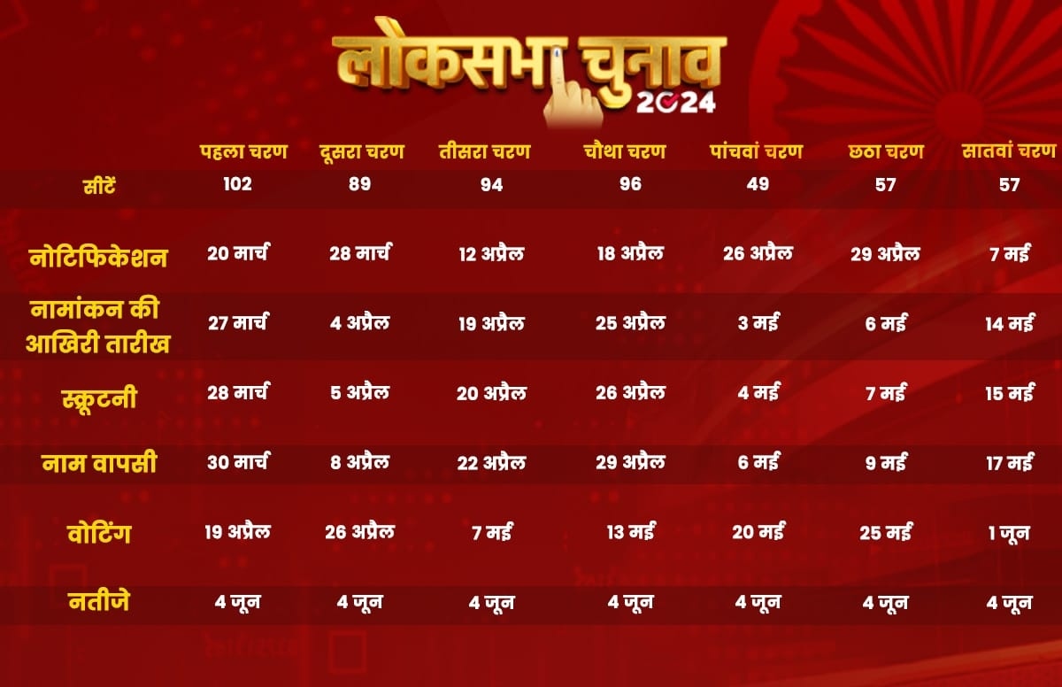 The Electoral Commission has announced that the elections will take place over seven phases nationwide, with the votes being counted on June 4, bringing forth the results. Voting will occur on April 19 for the first phase, April 26 for the second, May 7 for the third, May 13 for the fourth, May 20 for the fifth, May 25 for the sixth, and June 1 for the climactic seventh and final phase.