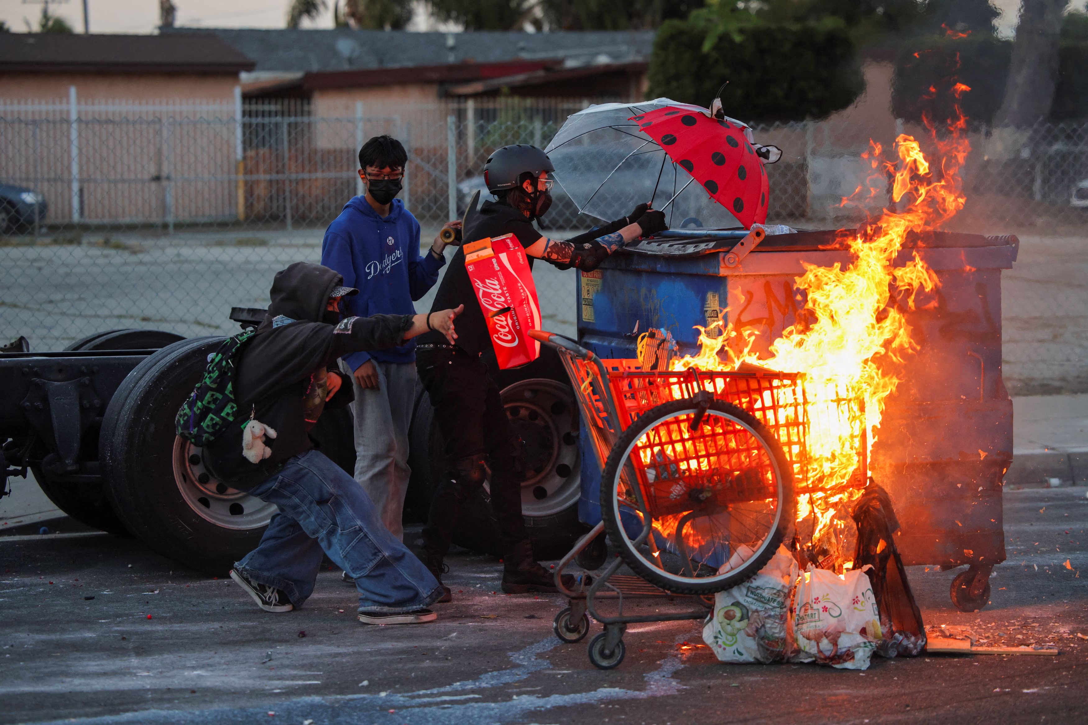 Some protesters covered their faces with masks, chanting 'ICE Out of Paramount,' while holding posters condemning immigration raids. Others stood resolute amidst the smoke-filled streets.