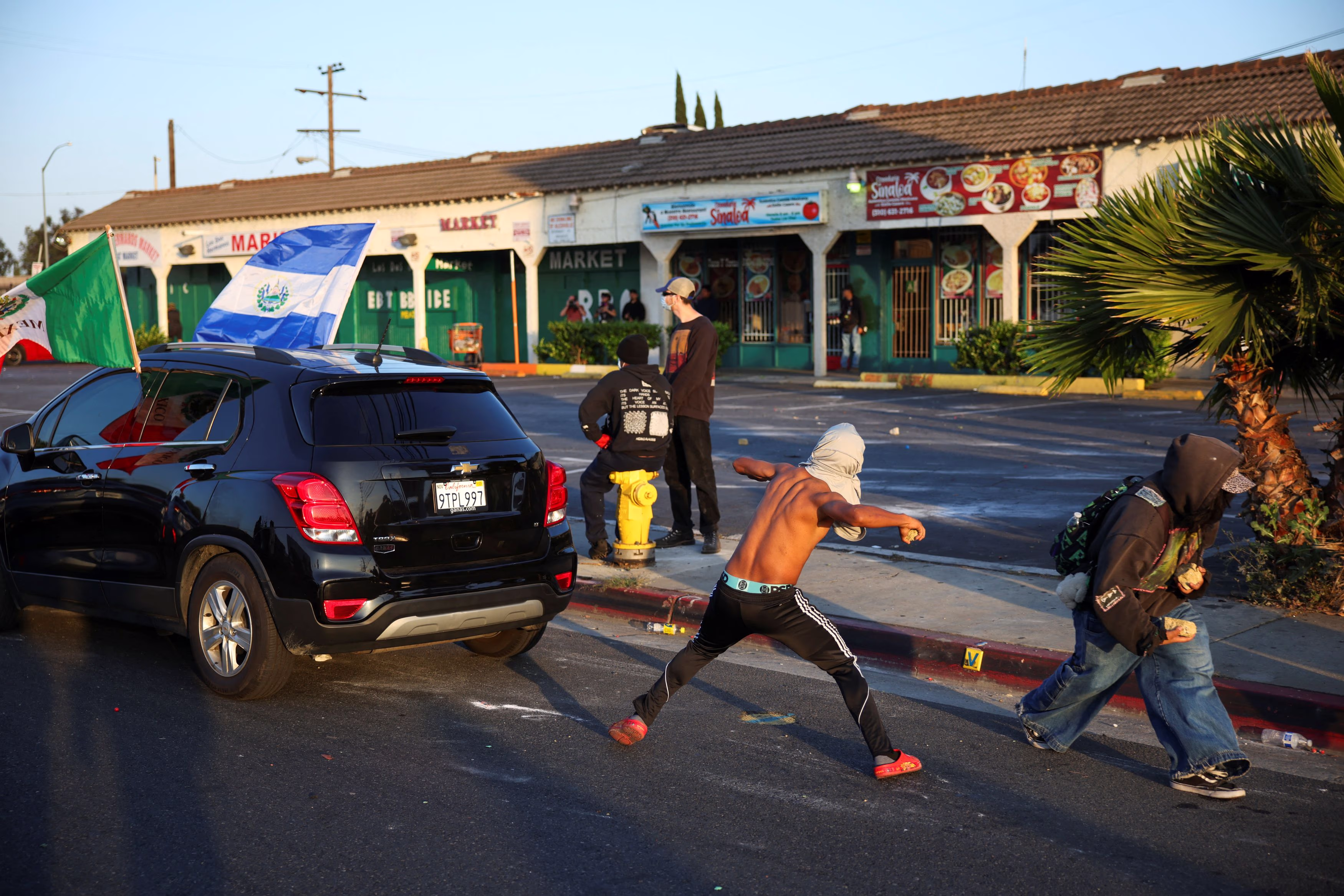 To disperse the crowds, Border Patrol agents used tear gas and flashbangs. The growing crowd of protesters chanted slogans and waved flags, including a Mexican flag. Many were recording the events on their mobile devices, and a portion of the street had to be cordoned off due to the chaos.
