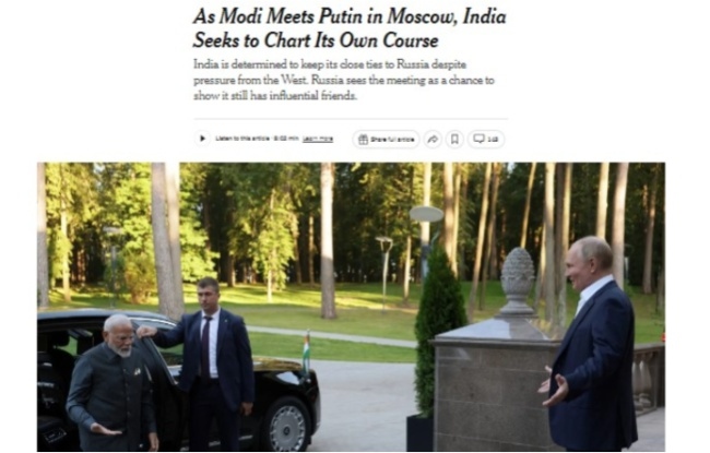 'The New York Times' also underlines Modi's visit as a testament to India's unwavering diplomatic course, even against the West's attempts to isolate Russia.