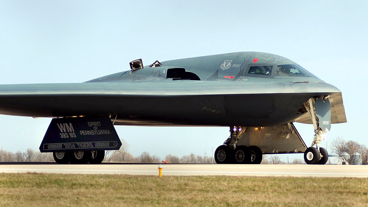 Features two GBU-57 Massive Ordnance Penetrators (MOP), each weighing 13,600 kilograms, capable of penetrating deep concrete bunkers.