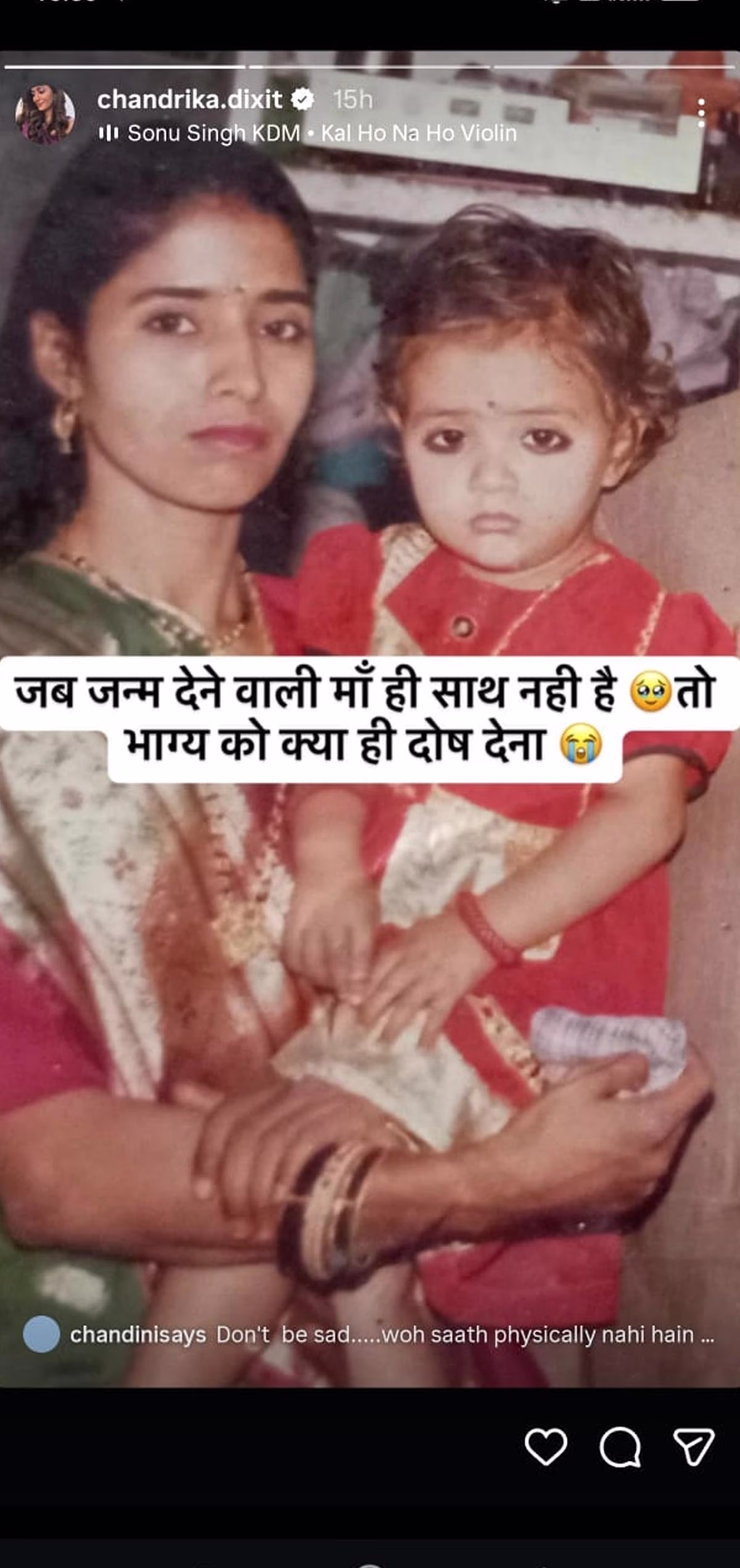 After accusing her husband of cheating, Chandrika shared a cryptic post on her Instagram story. Along with an emotional, sad song, she captioned it: 'Everything happens for the best, even if it doesn't feel good right now.' In a separate post, Chandrika shared a childhood photo with her mother, writing: 'When my own mother isn't beside me, how can I blame fate?' Adding a teary emoji to emphasize her sentiment.