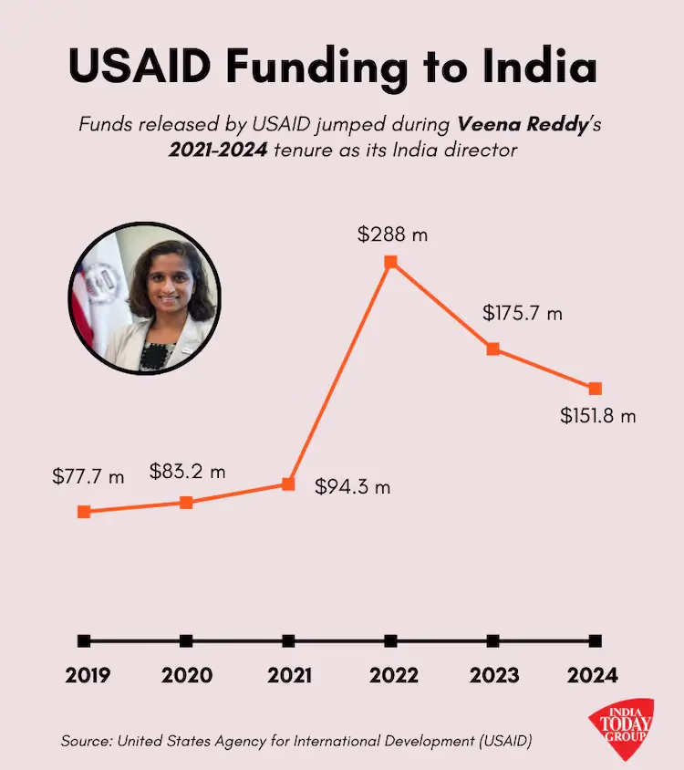 Veena Reddy, the former India director of the U.S. Agency for International Development (USAID), made headlines over alleged $21 million funding to increase voter turnout in India. Reddy came into the limelight when BJP MP Mahesh Jethmalani demanded an investigation into the funding and questioned her role. Following criticism, President Donald Trump remarked that the fund might have been used to influence the results of the Lok Sabha elections. Trump stated at a gathering on Wednesday, "I believe they (USAID) were trying to elect someone else. We must inform the Indian government."