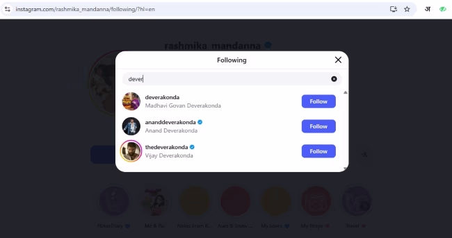 Comparatively, Vijay Deverakonda shows less activity on social media than Rashmika Mandanna. This passive approach might explain his apparent disinterest in following others. However, post-marriage, fans hope to see Vijay flaunt his love by sharing romantic moments with Rashmika, and at the very least, follow her back on social platforms.
