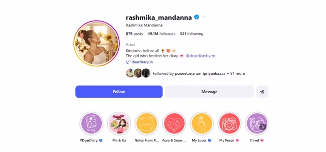 On the other hand, Rashmika Mandanna shared vibrant celebratory photos on her Instagram story, featuring elegantly decorated tables and chairs, along with paintings of her dogs and several decorative items. Rashmika’s Instagram is an enchanting collection filled with behind-the-scenes moments from her film shoots, advertisements, holiday adventures, and candid snapshots. She is followed by about 49.1 million users and follows 341 accounts, including her husband Vijay Deverakonda, and her in-laws Madhavi and Anand Deverakonda.