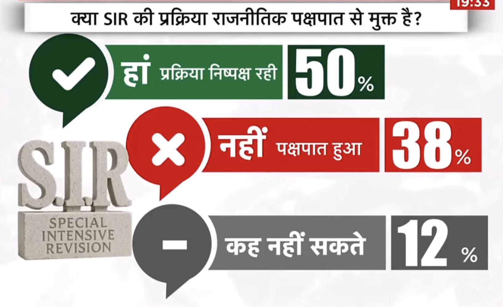 Asked if the SIR process is free of political bias, half of the participants leaned toward electoral commission's perspective, with 50% agreeing. However, 38% disagreed, and 12% were unsure.