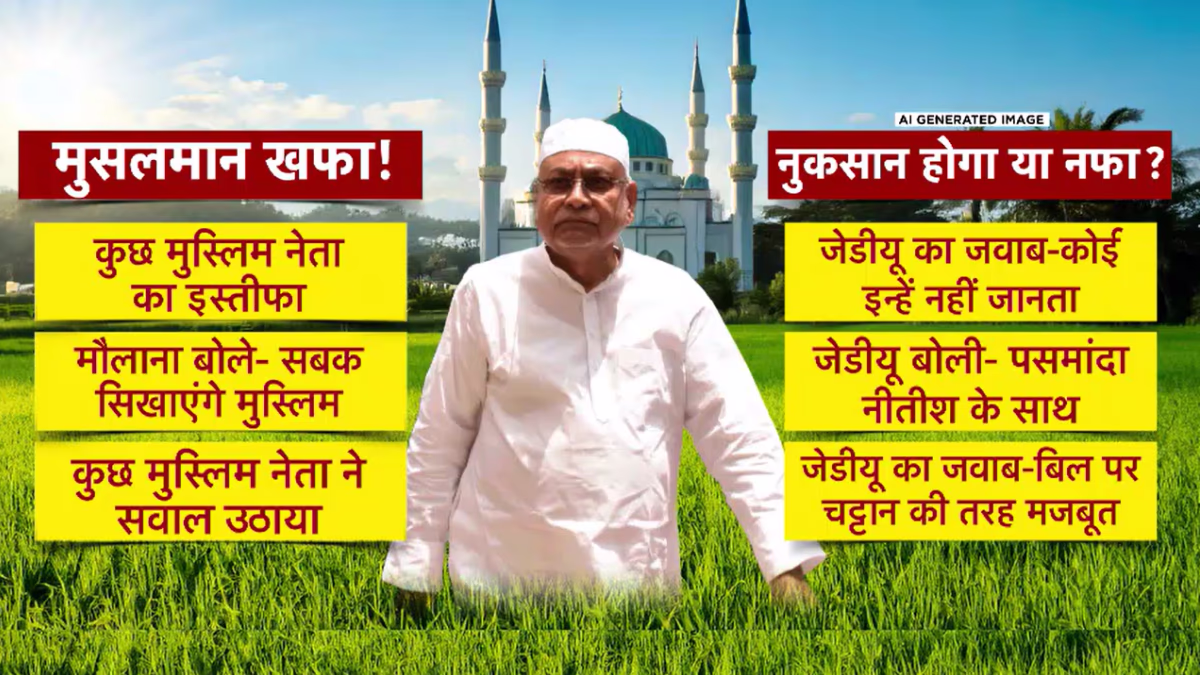 Several Muslim leaders within JD(U) resigned following the party's support for the bill in Parliament. Among them, some have demanded the bill's withdrawal, alleging betrayal by Nitish Kumar. These leaders assert that Muslim voters will respond to this perceived betrayal, while JD(U) claims that those who left were not well-known figures. They also boast support from Pasmanda Muslims. Meanwhile, it is being questioned whether Nitish, who has managed coalition dynamics for over 20 years, is unaware of any discontent among Muslim voters regarding the Waqf Bill. Party line altered by JD(U)'s minority cell leader Mohammed Shahnawaz Malik, other party officials, and former candidates who resigned, but JD(U) maintains minimal impact from these departures.